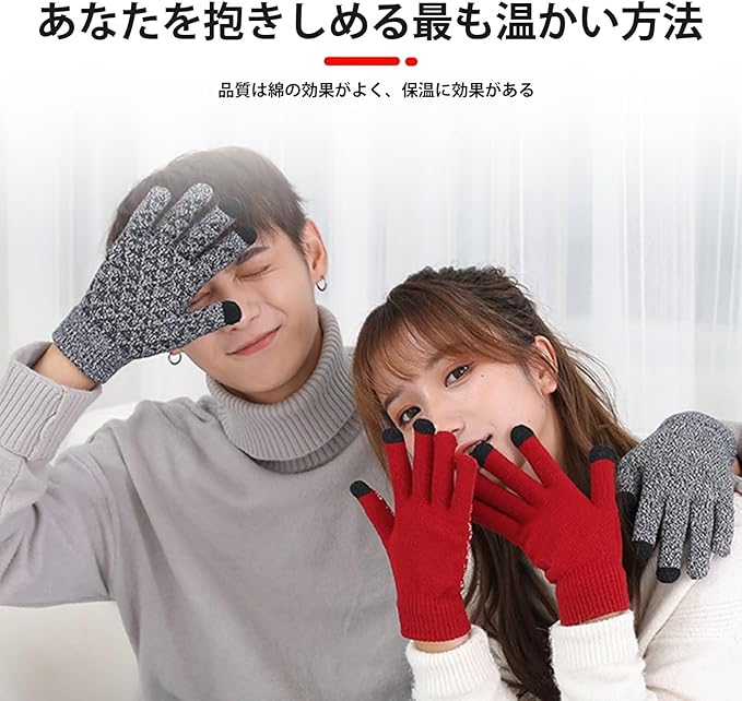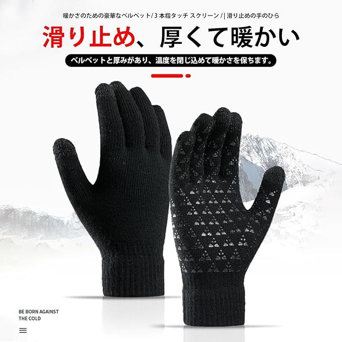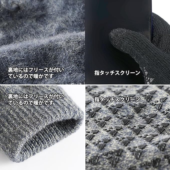 [LEZOOY] 手袋 ニット メンズ スマホ対応 グローブ 冬 裏起毛 弾性手首 快適フィット 防風 防寒 滑り止め 厚手 保温 バイク サイクリング 通勤 通学 男女兼用 ワンサイズ a