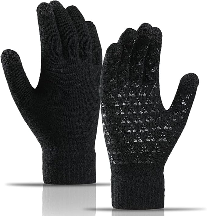 [LEZOOY] 手袋 ニット メンズ スマホ対応 グローブ 冬 裏起毛 弾性手首 快適フィット 防風 防寒 滑り止め 厚手 保温 バイク サイクリング 通勤 通学 男女兼用 ワンサイズ