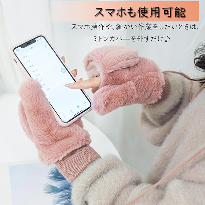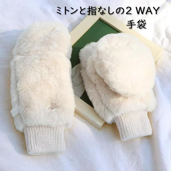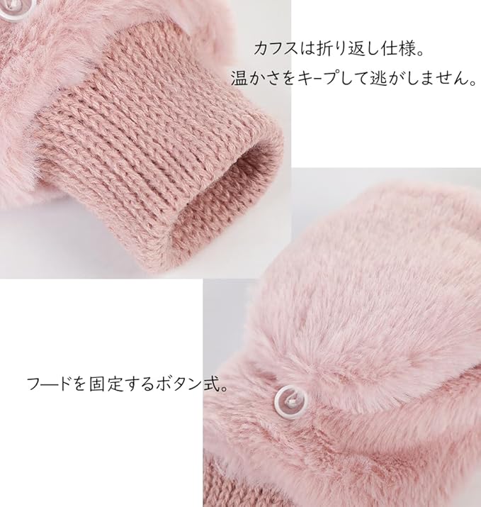 [Qiania] 手袋 レディース 冬 指なし ミトン 2way 手袋 かわいい 暖かい 裏起毛 厚手 折りたたみフード手袋 紐付き 通勤 通学 自転車 誕生日 クリスマス プレゼント