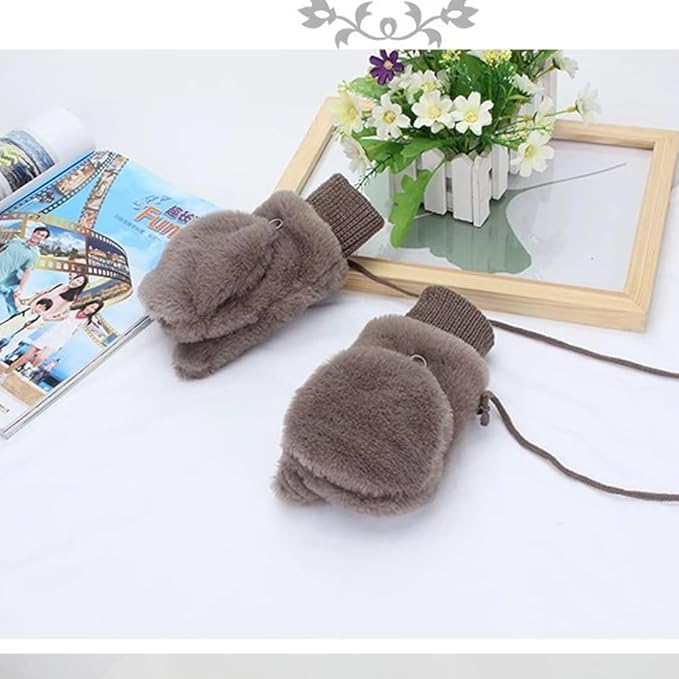 [Qiania] 手袋 レディース 冬 指なし ミトン 2way 手袋 かわいい 暖かい 裏起毛 厚手 折りたたみフード手袋 紐付き 通勤 通学 自転車 誕生日 クリスマス プレゼント a