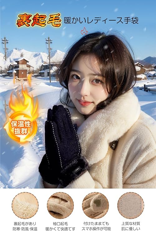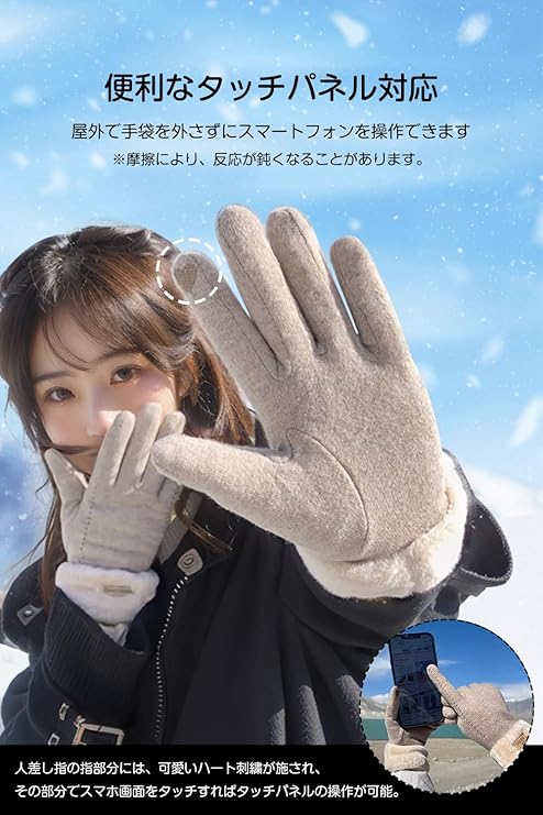 [Pawinpaw] 手袋 レディース 秋冬 防寒 スマホ対応 保温グローブ【ふわふわ・裏起毛・タッチパネル対応・瞬間で暖かい・伸縮性】 防風 厚手 可愛い手袋 ボア 柔らかい 女性 おしゃれ 誕生日プレゼント 通勤/通学/登山/自転車