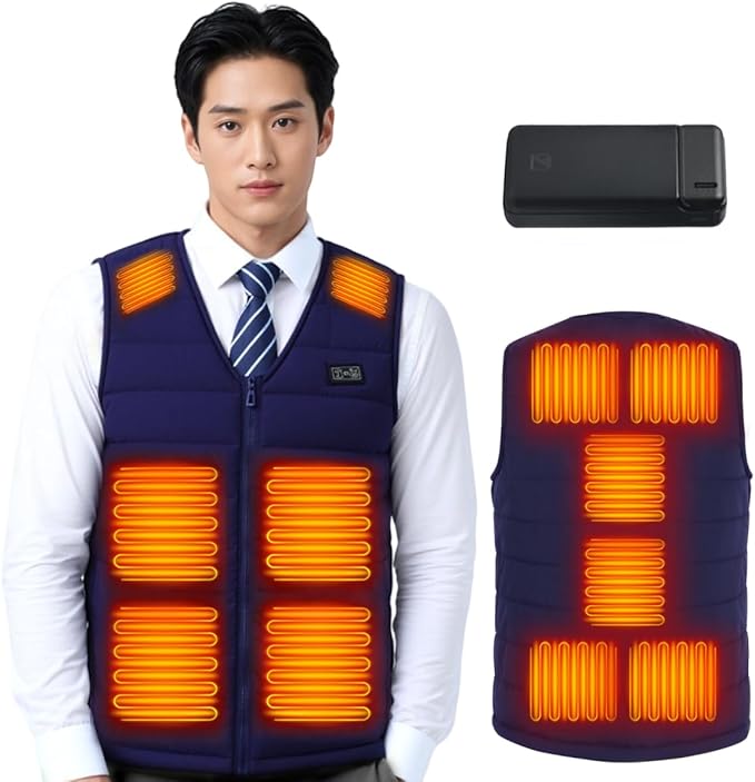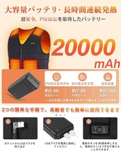 [PandaRio] 電熱ベスト ヒーターベスト 【超速暖 前後独立3段階温度制御】 大きいサイズ S-6XL 前後12箇所発熱 軽量 Vネック 20000mAh大容量バッテリー付き USB給電 丸洗い 屋外作業 男女兼用 40-120kg対応