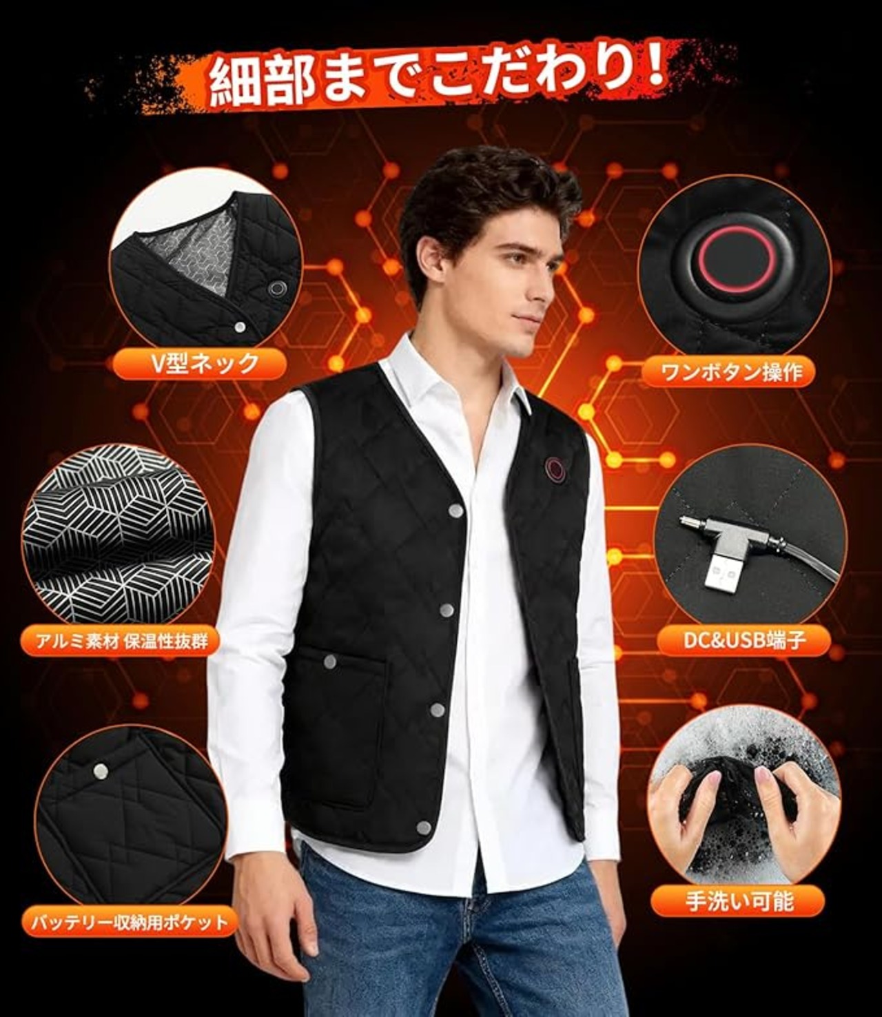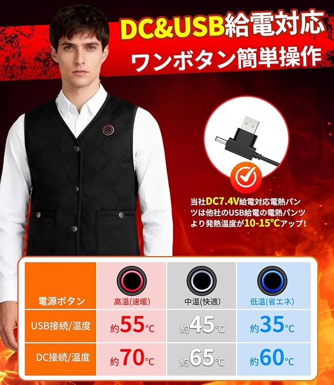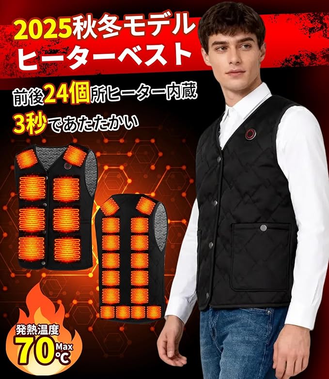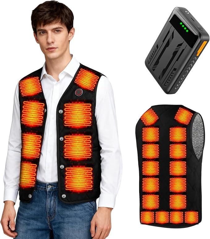 [KLIFE] 電熱ベスト インナーベスト 加熱ベスト【前後24箇所発熱&DC7.4V高出力&40000mAh大容量バッテリー付】ヒーターベスト バッテリー付き USB/DC給電 3段階温度調節 速暖 電熱ジャケット 電熱ウェア 防寒服 丸洗い可 男女兼用 a