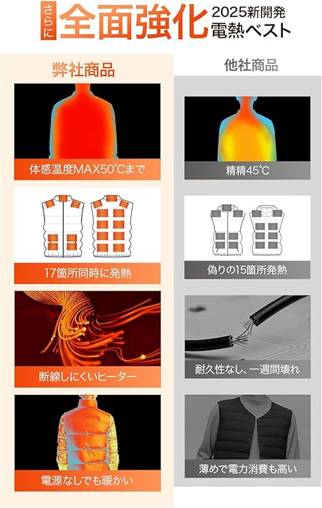 [Yoigood] 電熱ベスト 【40800mAh大容量バッテリー付き 17箇所発熱】 加熱ベスト 前後独立スイッチ 3段階温度調節 USB給電 ヒートジャケット 速暖 保温 メンズ レディース 加熱服 暖房ウェア 丸洗い 省エネ 通勤 通学 防寒対策