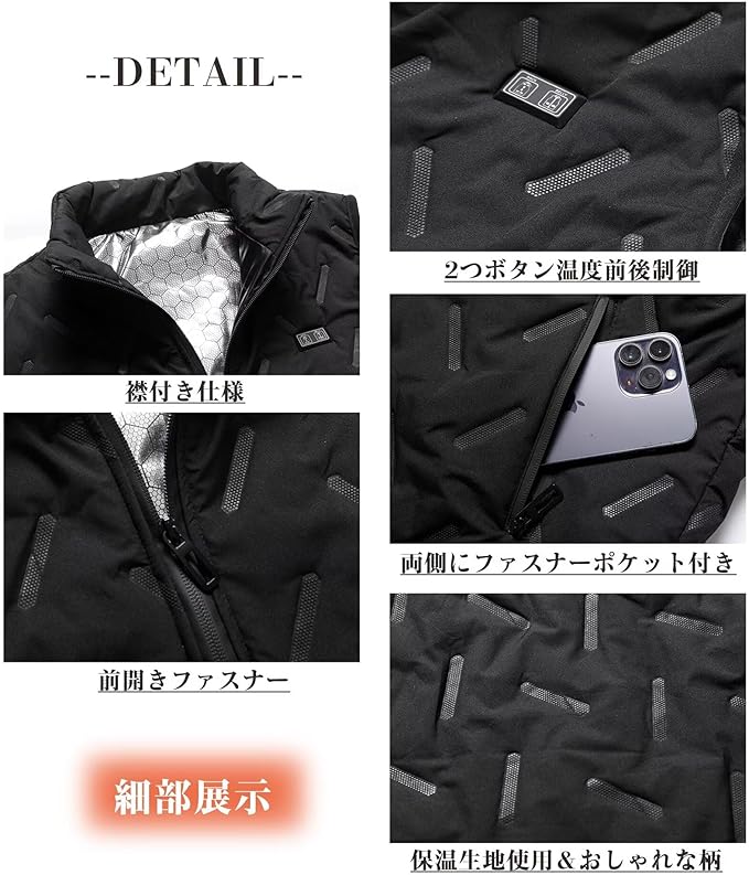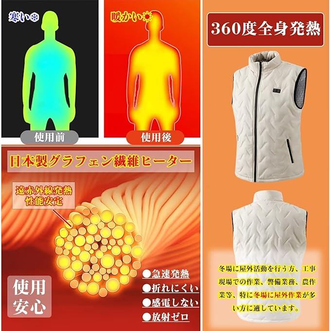 [Yucahype] 電熱ベスト 9箇所発熱 男女兼用 電熱インナー M-5XL 大きいサイズ USB前後温度独立制御 3段温度調節 おしゃれ ヒーターベスト ヒートテック 冬アウター 防寒用 バイク ゴルフ メンズ レディース a