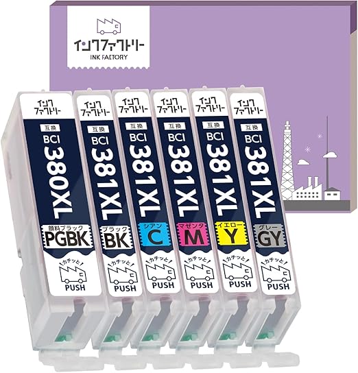 BCI-381XL/380XL 6色セット 大容量 キヤノン対応 互換インクカートリッジ 対応機種 : PIXUS TS8430 / PIXUS TS8330 / TS8230 / TS8130 色 : PGBK/BK/C/M/Y/GY インクファクトリー a