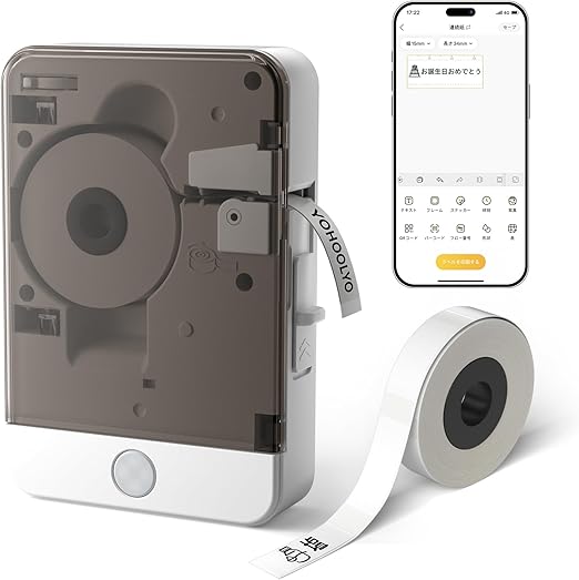 YOHOOLYO ラベルライター スマホ専用ラベルプリンター Bluetooth接続 シールプリンター テープライター USB充電式 日本語対応可能 ロール紙1個付き 日本語取扱説明書付き 10-15mm a
