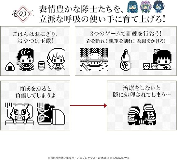 お世話の仕方によって、様々な呼吸の使い手に成長し、お世話をサボると鬼がせまってくる