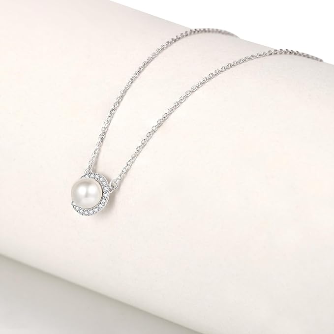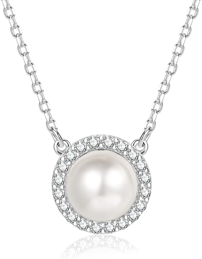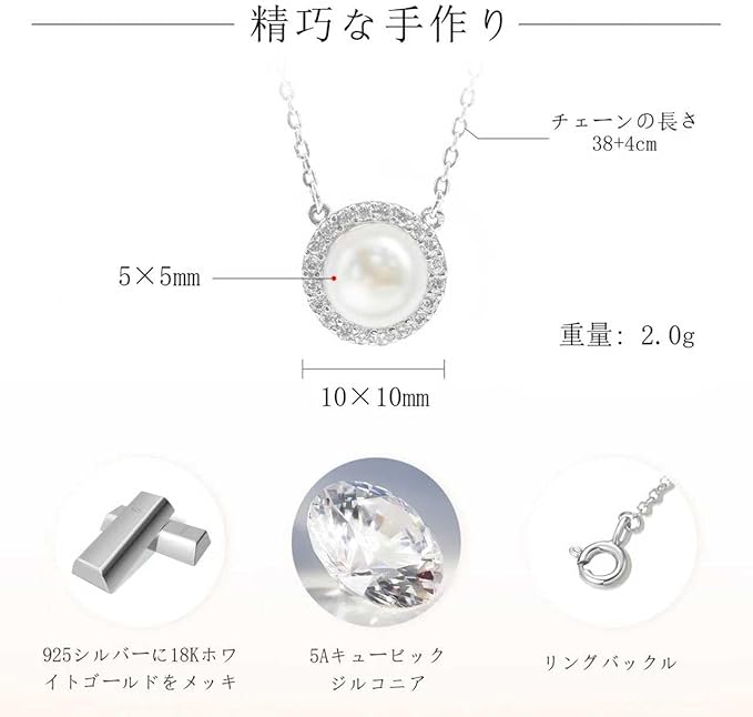 [Ningnvshi] ネックレス レディース,シルバー925 ネックレス,ジルコニア 淡水パール アレルギー対応,調節可能、記念日、バレンタインデー、クリスマス、あらゆる機会やギフトに最適、美しいギフトボックス付き