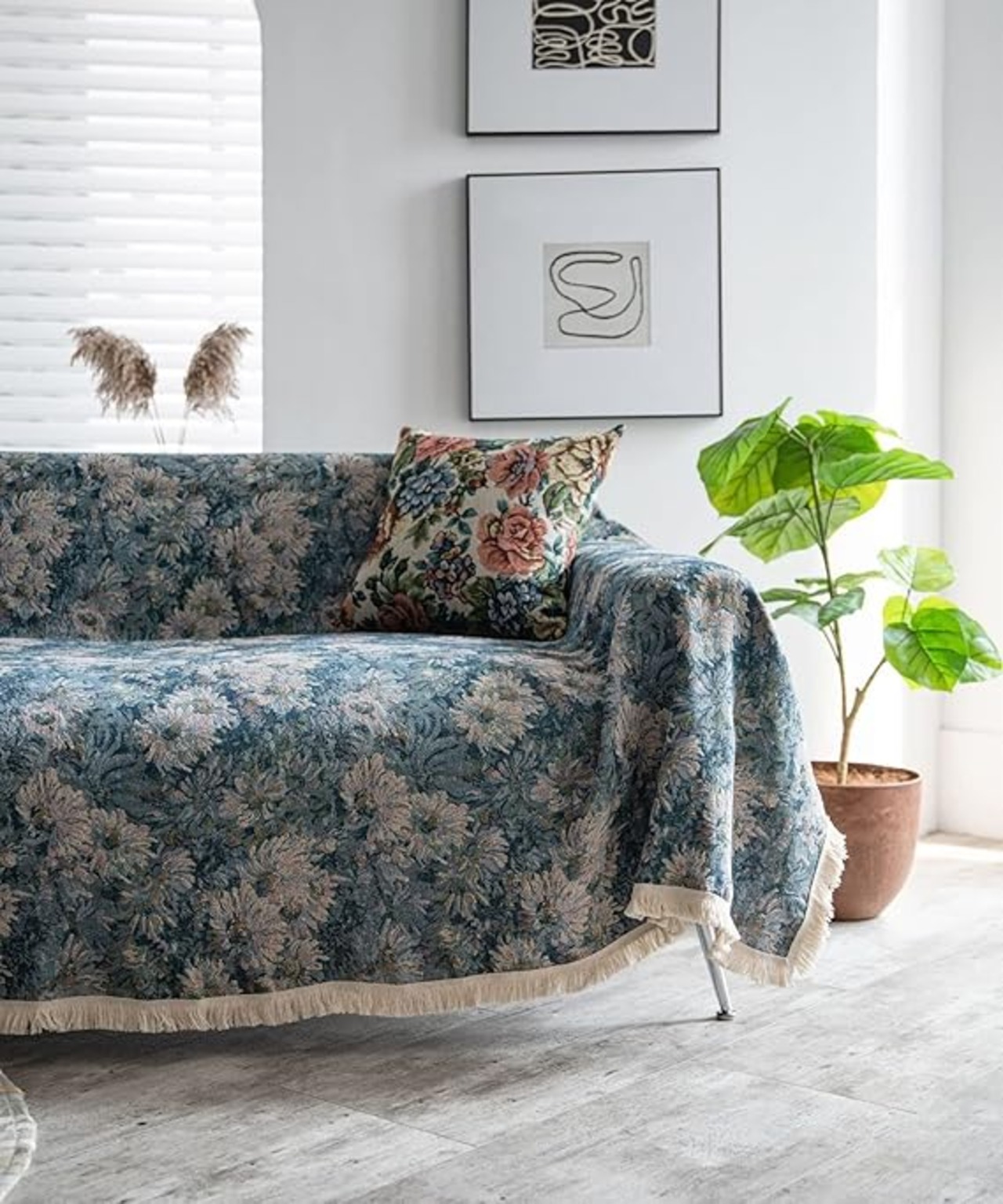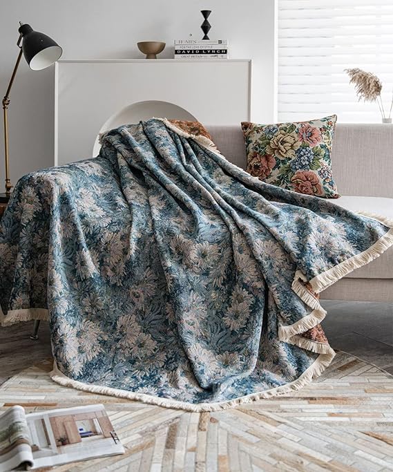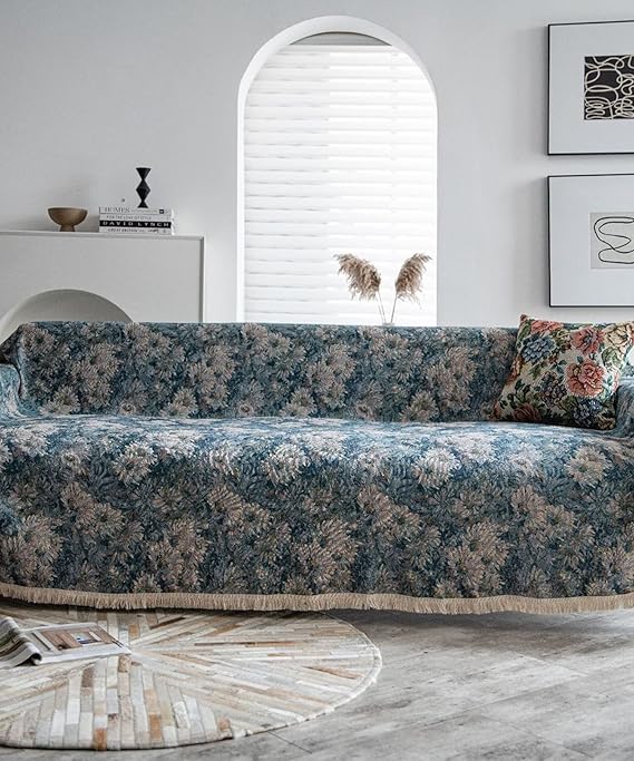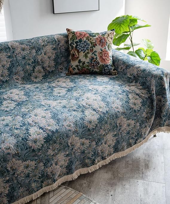 レトロアンティークフリンジ花柄ソファーカバー