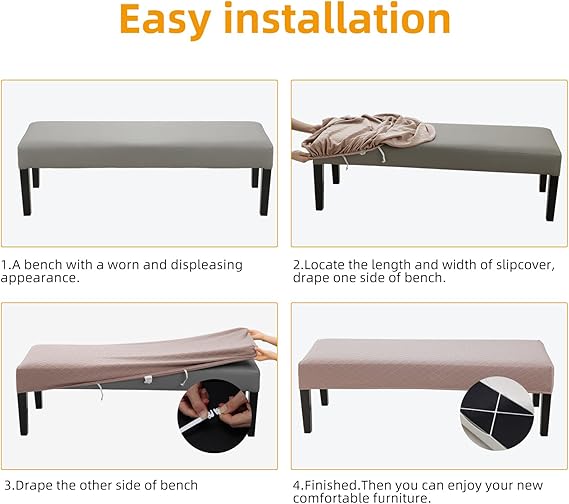 対応するベンチサイズ:座面幅約120-130cm、奥行約40-46cm、厚さ約5-12cm。ベンチシートカバーは手触りが柔らかく、薄くて通気性があり、シワになりにくく、防水、四季適用な素材感。ベンチに新しい外観を与えます、お気に入りのチェアを汚れや傷から守ります、長くお使いいただけます