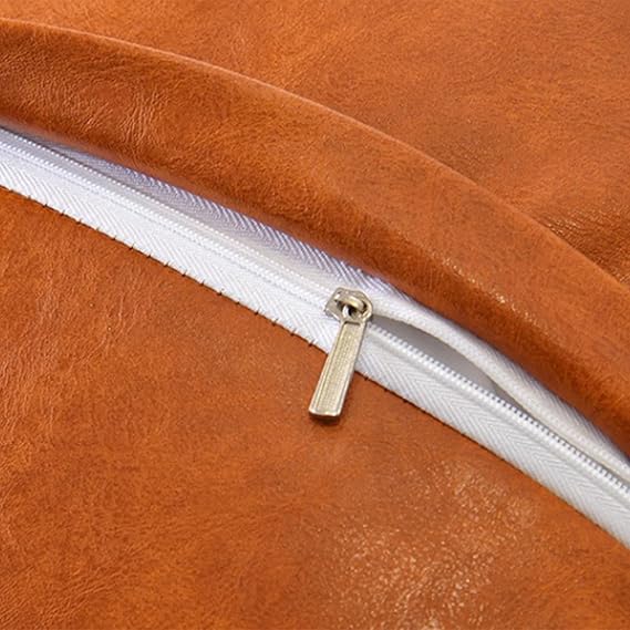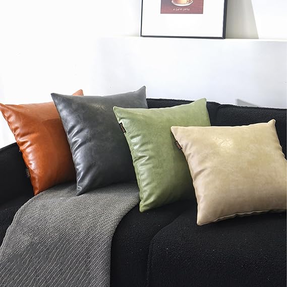 まるで本革のような高級感を持つフェイクレザー素材のクッションカバー。しっとりとした手触りと自然なシワ感が特徴で、どんなインテリアにもマッチする上品なデザインです。撥水性があり、お手入れも簡単。汚れが付きにくく、日常使いに最適です。カラーは落ち着いたトーンからアクセントになる鮮やかな色まで豊富に揃っています。背面にはファスナー付きで、クッションの出し入れもスムーズ。リビングや寝室の雰囲気をワンランクアップさせるアイテムです。