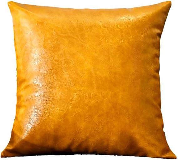 [Queen-b] クッションカバー 45×45cm 本革のような質感 PUレザー おしゃれ 座布団 カバー 背当て 枕 カバー ソファー フェイクレザー 正方形 インテリア 装飾 (イエロー) a