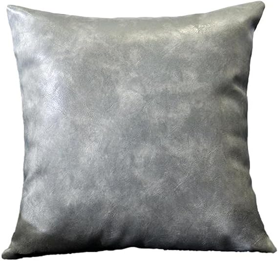 [Queen-b] クッションカバー 45×45cm 本革のような質感 PUレザー おしゃれ 座布団 カバー 背当て 枕 カバー ソファー フェイクレザー 正方形 インテリア 装飾 (グレー) a