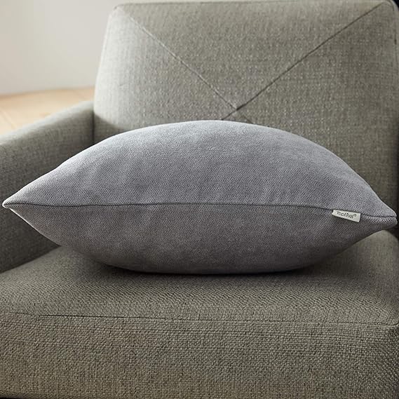 Topfinel クッションカバー リネンっぽい 65X65CM 北欧 おしゃれ 綿麻 無地 ソファ背当て 装飾枕カバー 座布団カバー グレー 2枚(全19色) a