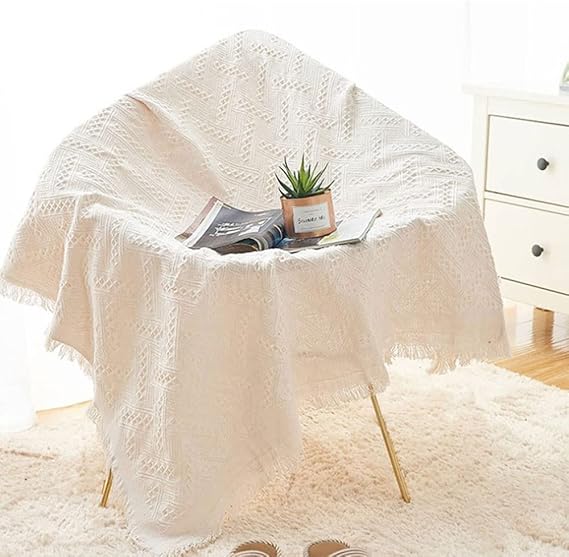 ニットテーブルクロス 白いニットの小さなテーブルクロス ニットタッセルテーブルクロス ベッドサイドテーブルクロス シングルソファカバー 小さなコーヒーテーブル用のテーブルクロス (130*130 CM) a