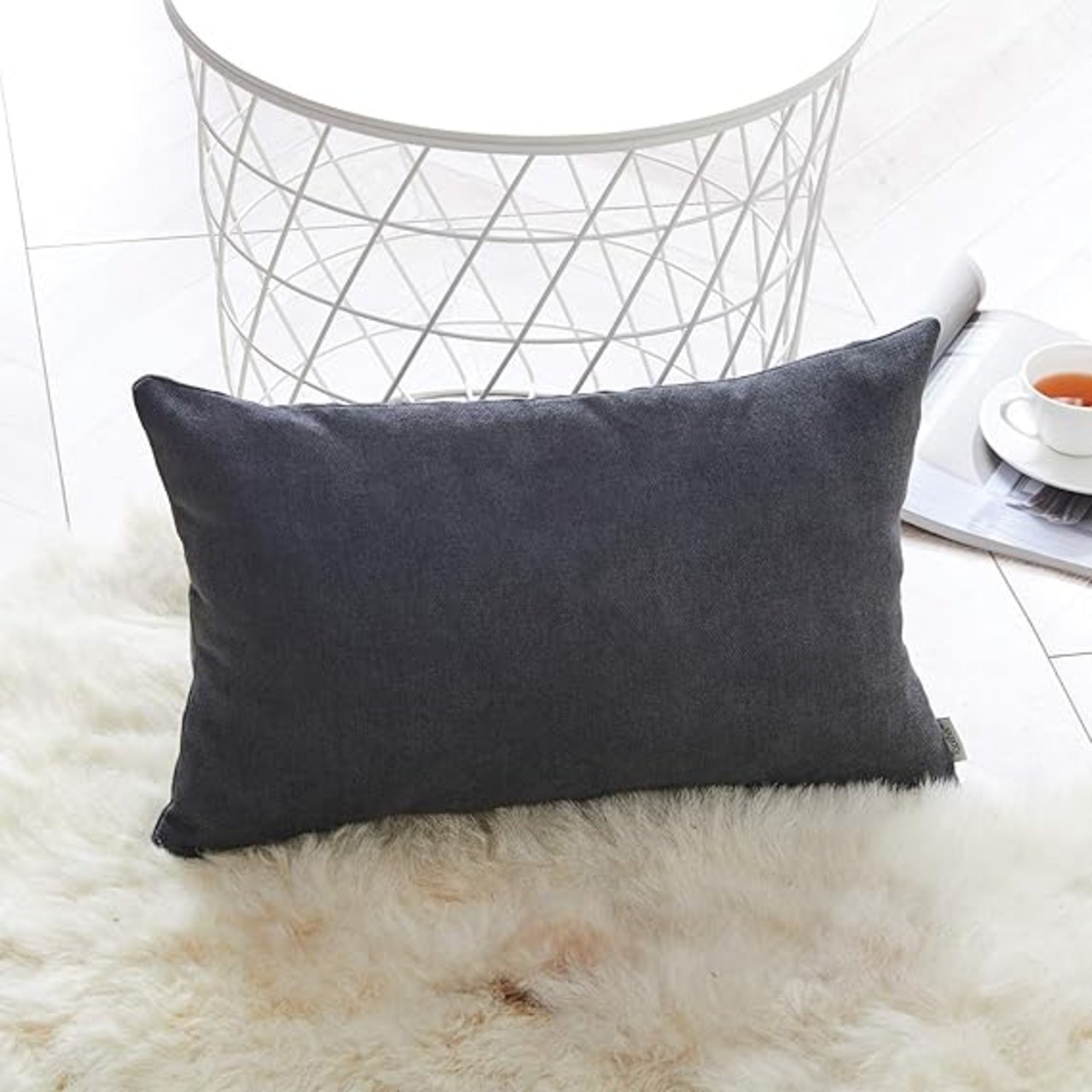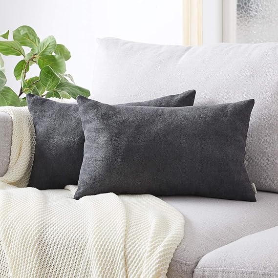 Topfinel クッションカバー 長方形 リネンっぽい 30×50cm 北欧 おしゃれ 綿麻 無地 ソファ背当て 装飾枕カバー 濃いグレー 2枚(全10色) a