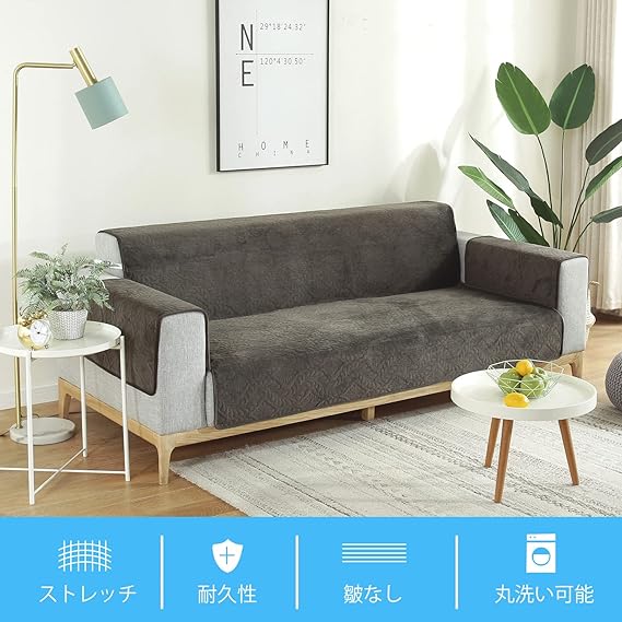 PETCUTE ソファカバー ソファーシーツ ソファー掛け 布マルチカバー 肘付き 取り替え簡単 シンプル 四季適用 洗える トープ 2人掛け(116*190cm)