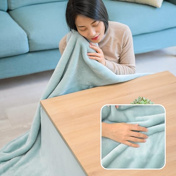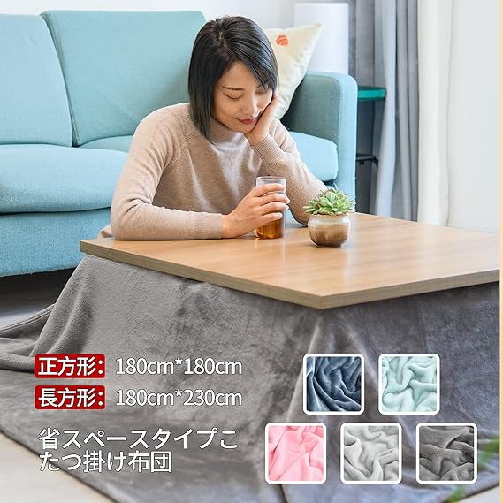 【軽量・省スペースデザイン】標準型のこたつ布団に比べ、見た目スッキリです。こたつ中掛け毛布は軽量で薄いため、持ち運びや収納がしやすく、こたつ掛け布団と重ねたご使用に適しています。