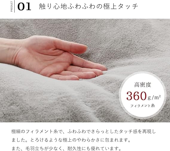 表地=ポリエステル100%(フェイクファー) 裏地=ポリエステル100%(フランネル) 中材=中空ポリエステル綿100%