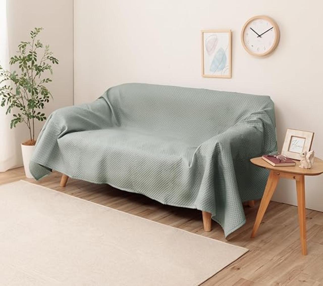イケヒコ マルチカバー ソファー カバー キルト ポート 約190×240cm グリーン 洗える 汚れ防止 こたつ布団カバー 北欧 おしゃれ シンプル 無地 ベッドカバー ラグカバー 長方形 3畳 #1295510126103 a