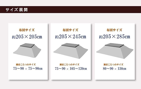 80~90×135~150cm幅のこたつ台に適応