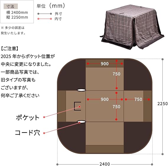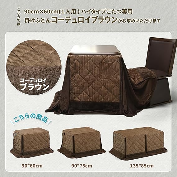 FunFun こたつ掛け布団 単品 ハイタイプ用 長方形 240×210(90×60cmテーブル用) ポケット付き フランネル 高保温アルミシート入り こたつ掛布団 保温性 ダイニングこたつ用 スリット ドライクリーニング対応 コーデュロイブラウン a
