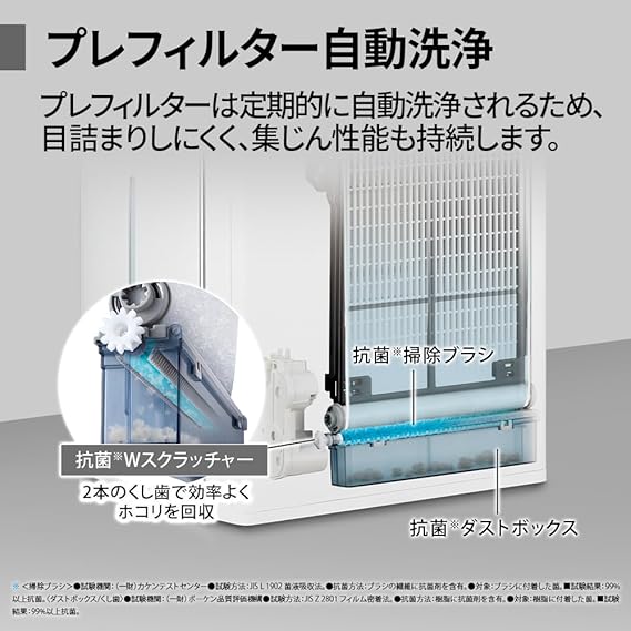 【自動掃除機能付き】お手入れ簡単。高い集じん性能が持続。