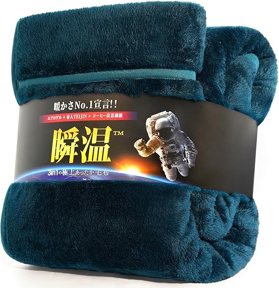 IMA HOME 【エアロゲル×アルミシートW断熱】毛布 シングル 冬 厚手 2枚合わせ 6重保温 ふわふわ あったか毛布 冬用 3重抗菌防臭防ダニ 吸湿発熱 W静電気防止 暖かい 掛け布団 もこもこ 宇宙服素材 軽量 襟付き 洗える 140×200cm ネイビー a