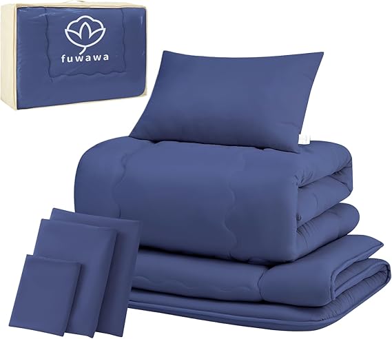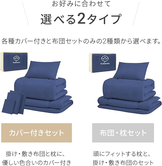 fuwawa 布団セット シングル 布団7点セット SEK認証 防臭 寝具セット【ボリューム増量 中綿1.6kg 掛け布団】 【高密度固綿入り三層 敷布団】 枕 洗える 布団カバー3点 来客用布団セット 収納ケース付き 組布団 ホコリが出にくい ふとんセット ピーチスキン加工 一年中使える ネイビー a
