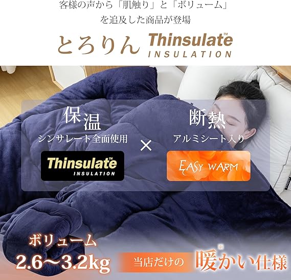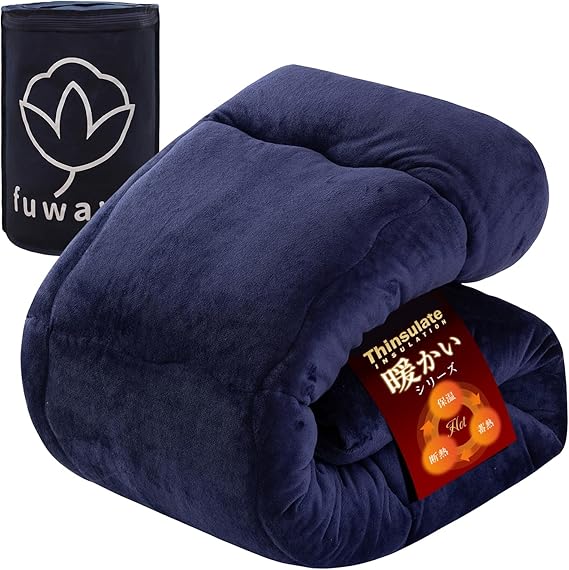 fuwawa 掛け布団 シングル 冬 シンサレート 掛け毛布 アルミシート入り5層構造 フランネル 軽くてあったか 高保温・断熱性 高機能中綿素材シンサート使用 従来商品よりも2倍の保温機能 静電気防止 抗菌防臭防ダニ加工 丸洗い 冬用 150×210cm ネービー a