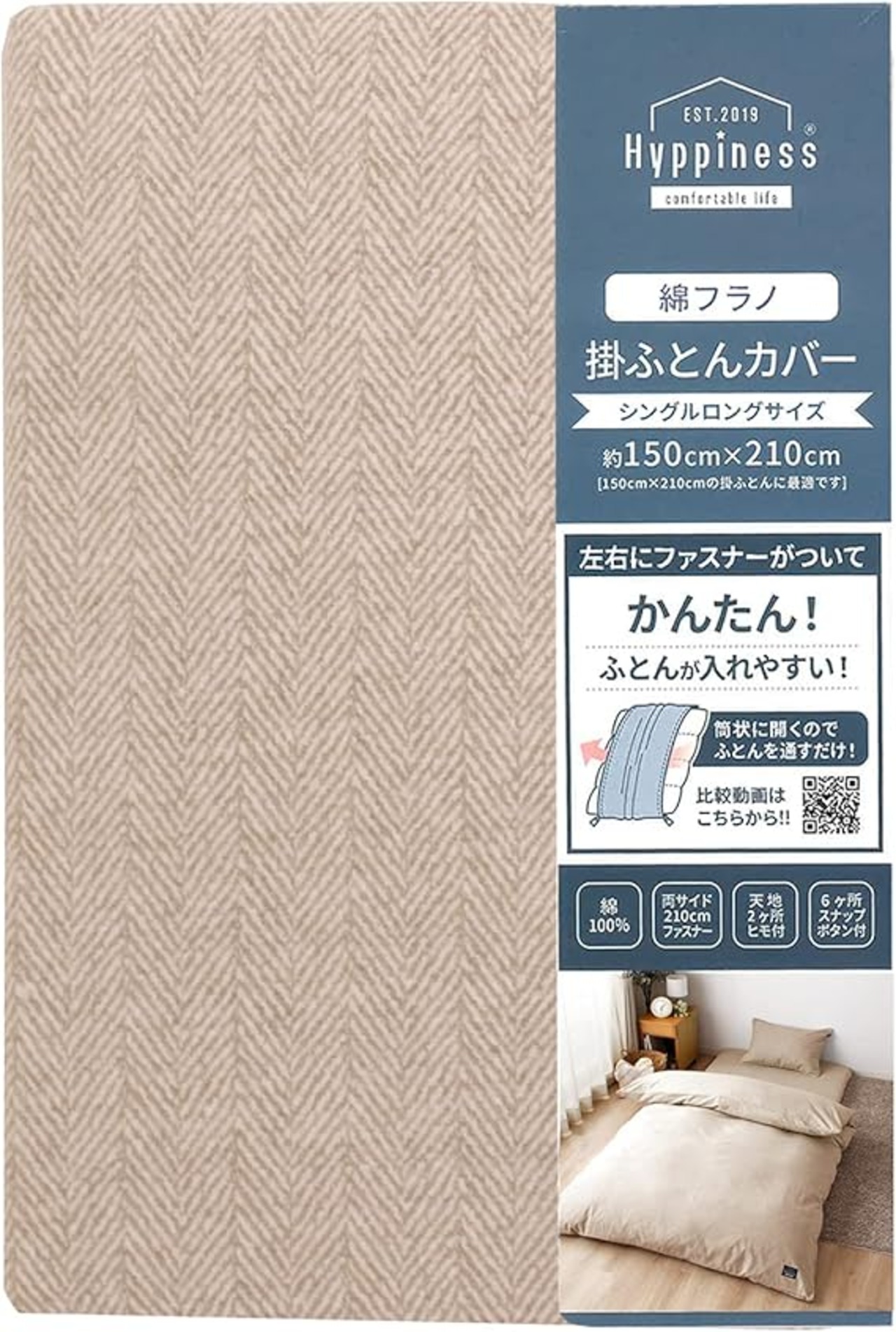 製品サイズ:約150×210cm(掛けふとんのシングルロング用)