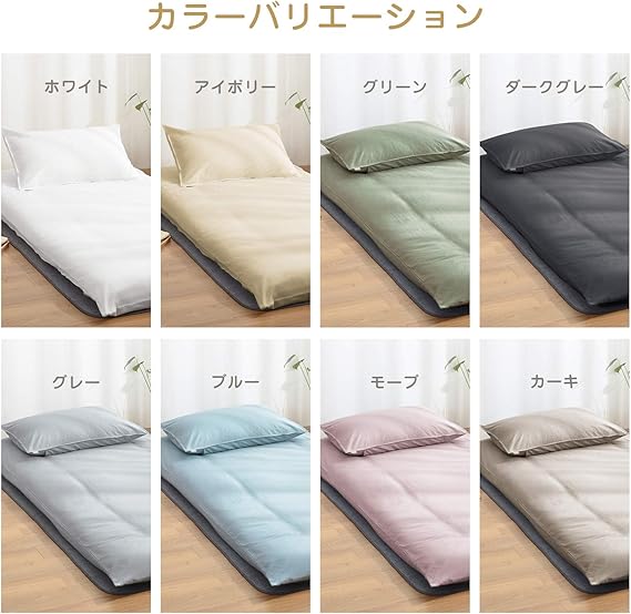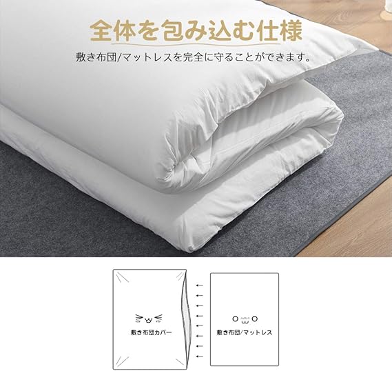 <敷き布団/薄型マットレス対応>:片側に215cm全開ファスナー付き、布団を出し入れが簡単です。厚さ3-12cmの敷き布団/マットレスを完全に守ることができます。
