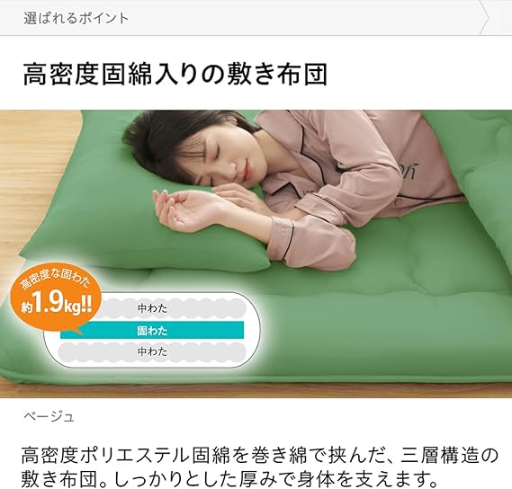 【 MS高反発固綿入り!フィット感抜群の敷布団 】この敷布団は、特許取得のMS高反発固綿を使用した3層構造を採用しています。高密度の生地で体を包み込むこと