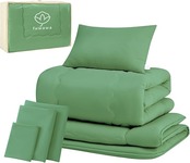 fuwawa 布団セット シングル 布団7点セット SEK認証 防臭 寝具セット【ボリューム増量 中綿1.6kg 掛け布団】 【高密度固綿入り三層 敷布団】 枕 洗える 布団カバー3点 来客用布団セット 収納ケース付き 組布団 ホコリが出にくい ふとんセット ピーチスキン加工 一年中使える グリーン a