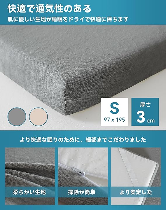 Sleep & Life 高反発マットレスシングル敷布団薄型細い体が痛くならない柔らかいマットレスズレ防止 洗える寝具厚さ3cm硬さ178N a