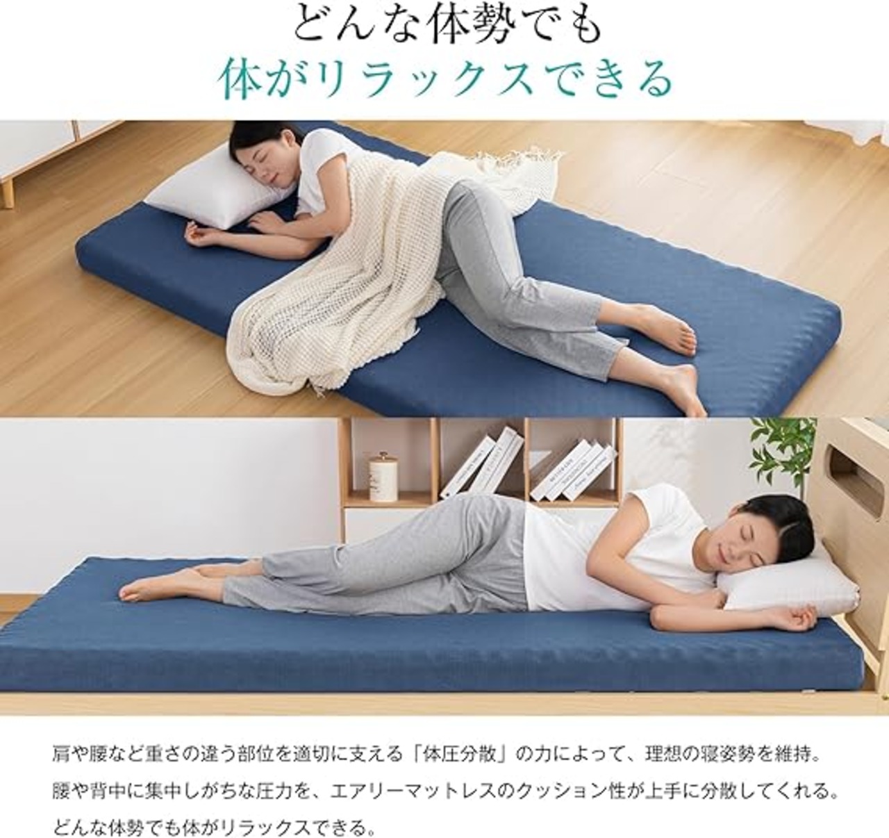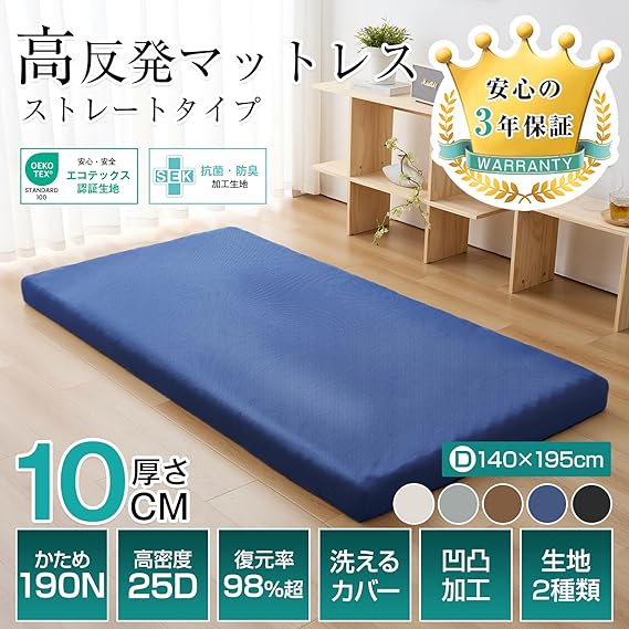Housecover マットレス ダブル 高反発 硬め190N 極厚10㎝ ベットマット 凹凸加工 敷布団 高密度 お昼寝マット 体圧分散 抗菌防臭 通気性が良い 折り畳みマットレス コンパクに収納 洗えるカバー取り外しでき 圧縮梱包 140 x 195 x 10cm ネイビー01 a