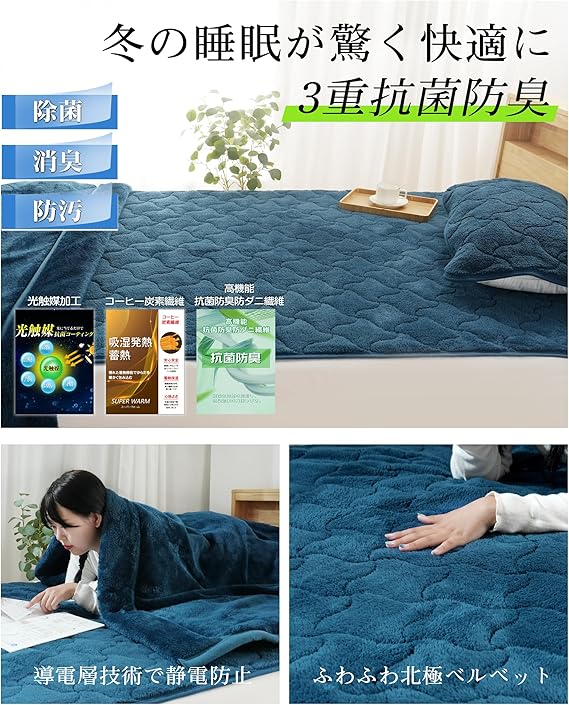 IMA HOME 【エアロゲル×アルミシートW断熱】敷きパッド シングル 冬 6重保温 ふわふわボア しきぱっと 3重抗菌防臭防ダニ 吸湿発熱 W静電気防止 ベッドパッド あったか敷きパッド 冬用敷きパッド 宇宙服素材 次世代コーヒー炭素繊維 洗える 100×205cm ネイビー a