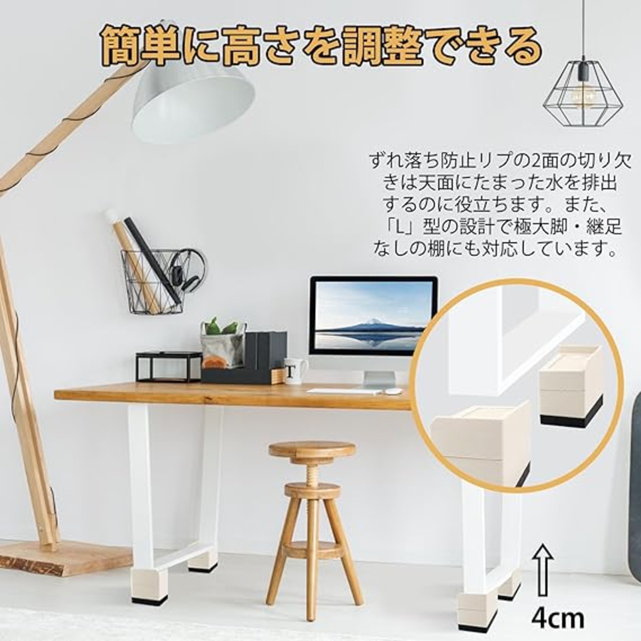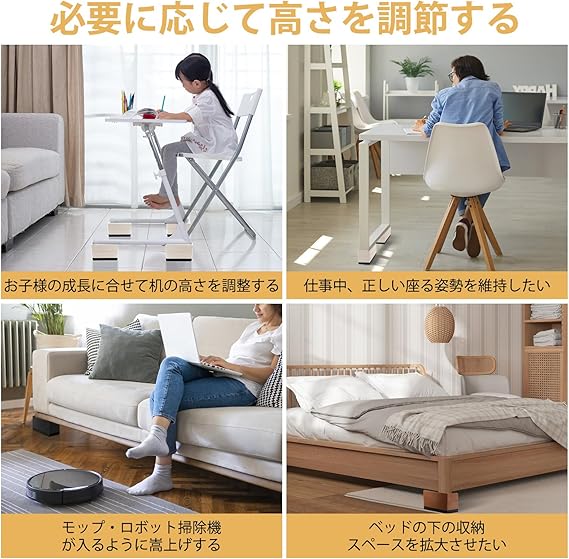 テーブル 高さ調整 机 7.3cm上げる こたつ ソファ ベッド デスク 椅子 高さを上げる足 家電・家具高さ調節器具 テーブル 脚 継ぎ足し こたつ足 耐荷重1000kg 4個セット 長方形 L型 3段式 ベージュ a