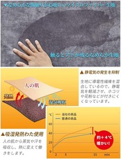 【静電気防止加工】静電気の発生を抑制 生地に導電性繊維を混合しているので、静電気を軽減させ、ホコリや花粉等が付きにくくなっています。洗濯や摩擦、屈曲による劣化が見られないので、制電効