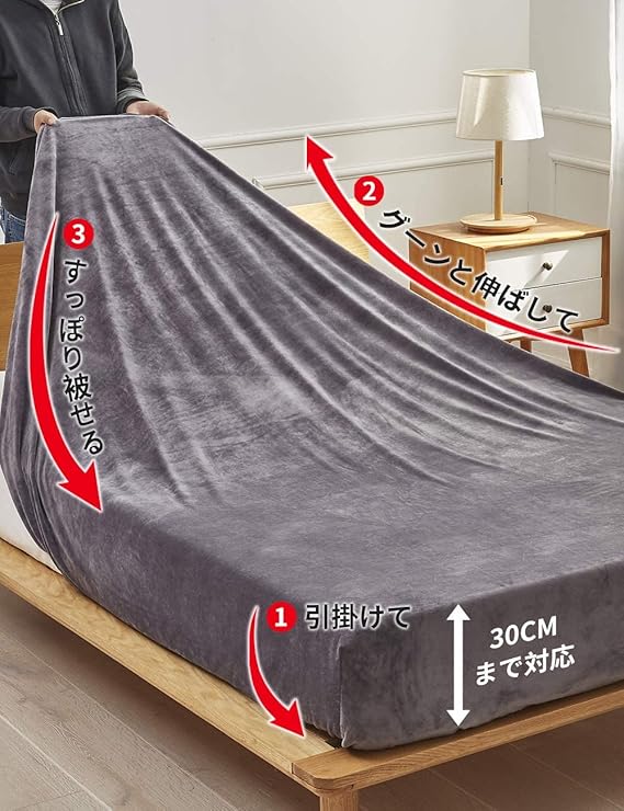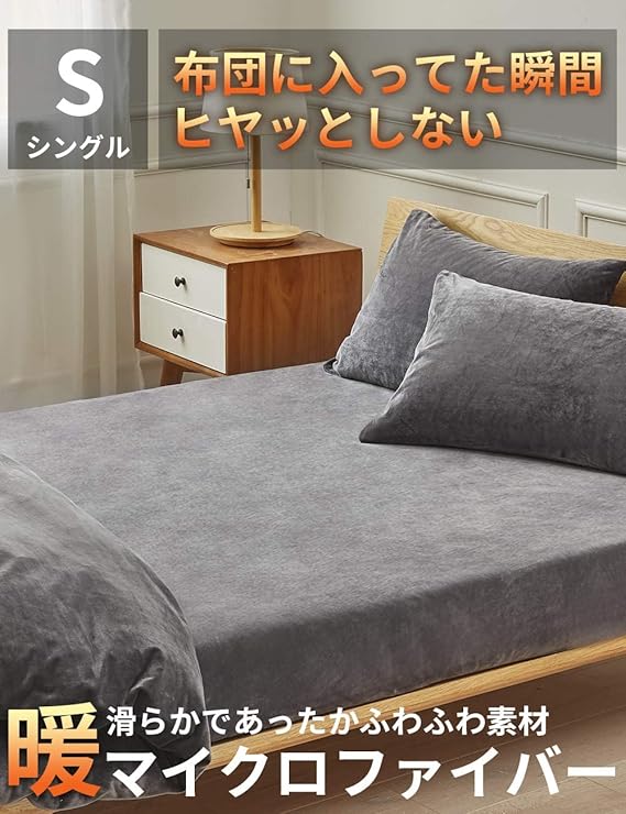 ボックスシーツ シングル 冬用 静電気防止 ベッドシーツ マイクロファイバー 防寒対策 寝具 暖かい マットレスカバー(シングル・100×200cm グレー)厚さ 5 cm〜30 cm のマットレスに適しています a