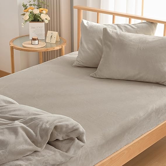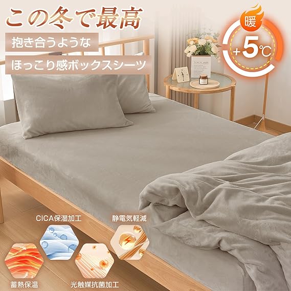 fuwawa ボックスシーツ シングル 冬 ベッドシーツ フランネル 暖かい 厚手 『プラス5℃蓄熱保温』吸湿発熱 冬用 防寒対策 ベッドカバー【CICA保湿加工・防ダニ99.9%・エッコテックス認定】抗菌防臭加工 全周ゴム付き 静電気防止 丸洗いOK 着脱簡単 マットレスカバー あったかシーツ 敷ふとん兼用 マチ部分約30cm(シングル・100×200cm グレージュ) a