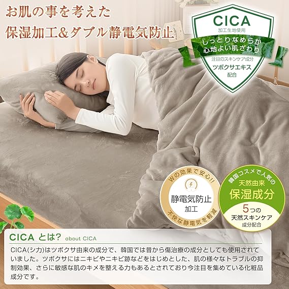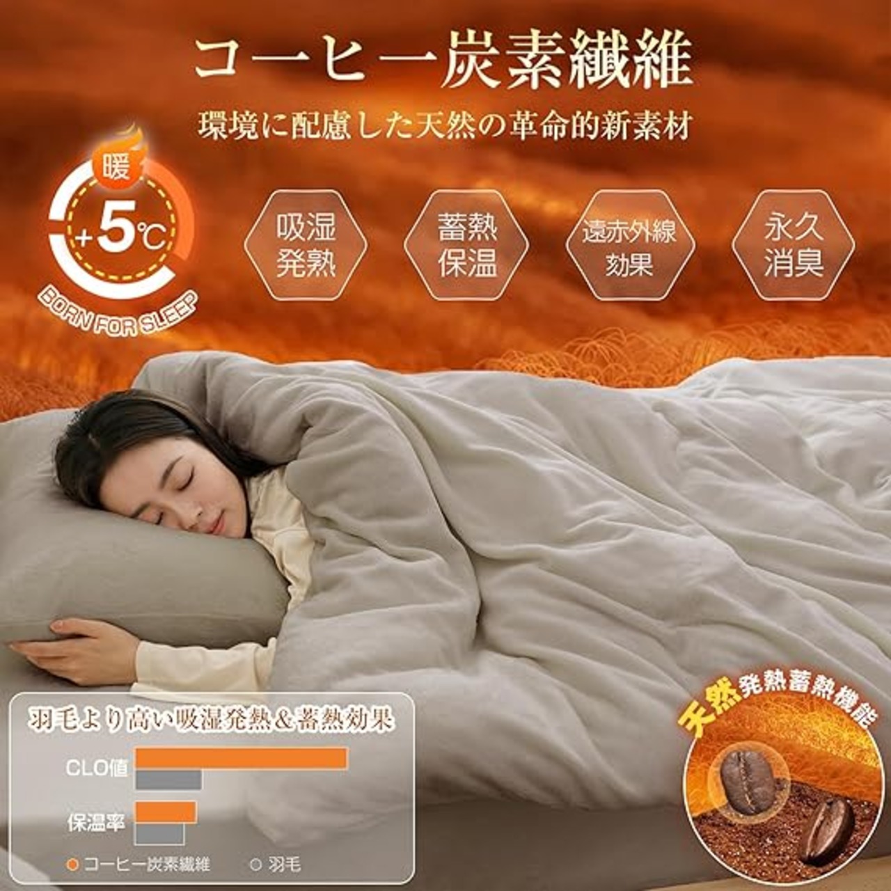 【プラス5℃蓄熱保温】天然発熱素材のコ一ヒ一炭素纎維をフランネル地に練り込み、格段に暖かさを保ってくれます。細かい繊維の隙間にたっぷり空気を含むので、身体の熱を保持します。体から放出される遠赤外線を素早く吸収して再放出するため暖かさが体を包み込みます。布団に入った瞬間、ふわふわぽかぽかな暖かさに包まれます。