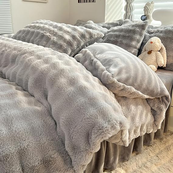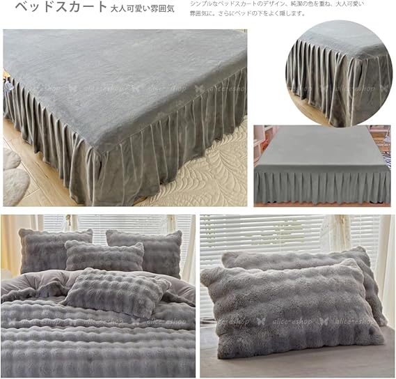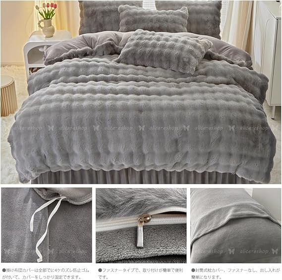 「 §zz.luxi」布団カバーセット 3点セット シングル 冬用 ミルクファー調 ふわとろ あったか フランネル フリル マイクロファイバー 厚手 もこもこ ボックスシーツ 掛け布団カバー 封筒式枕カバー 静電気防止 ふわふわ 暖かい 冷え対策 洗える 吸湿発熱 昼寝 高級 寝具カバー 姫系 ポコポコ(グレー-ミルクファー調) a
