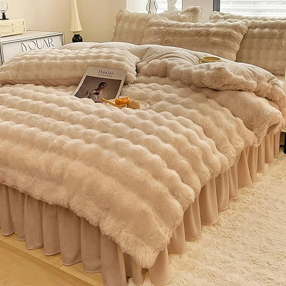 「 §zz.luxi」布団カバーセット 3点セット シングル 冬用 ミルクファー調 ふわとろ あったか フランネル フリル マイクロファイバー 厚手 もこもこ ボックスシーツ 掛け布団カバー 封筒式枕カバー 静電気防止 ふわふわ 暖かい 冷え対策 洗える 吸湿発熱 昼寝 高級 寝具カバー 姫系 ポコポコ(コーヒー-ミルクファー調) a