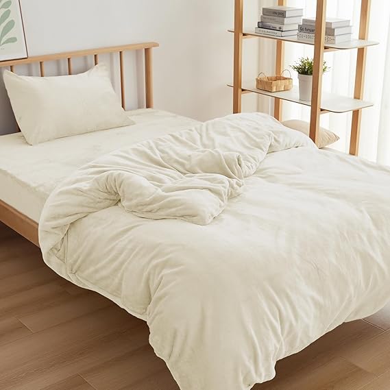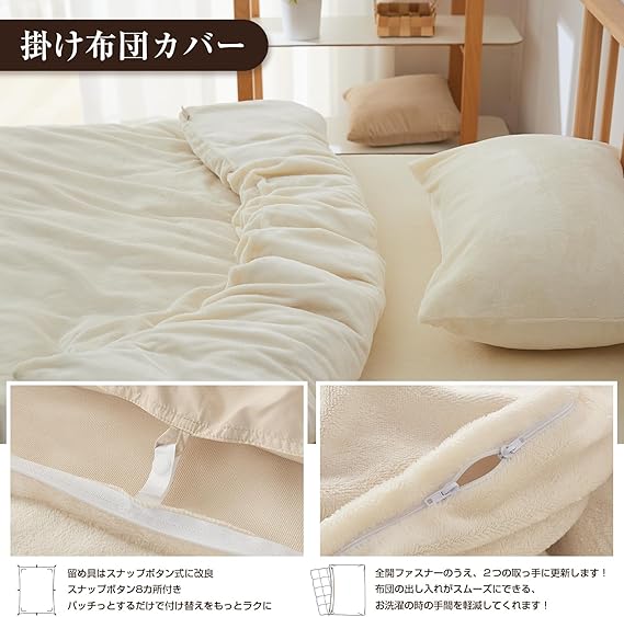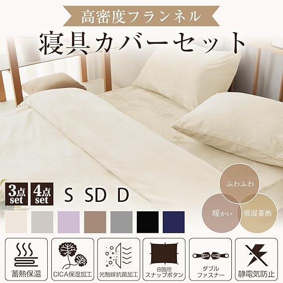 Housecover 寝具カバーセット フランネル生地 掛け布団カバー ファスナー仕様 ボックスシーツ 全周ゴム付き 枕カバー 合わせ式 ベッドシーツ 敷き布団カバー 洋式・和式兼用 洗い替え用 あったか マイクロファイバー 洗える 発熱 保温 静電気防止 丸洗いOK 冬 アイボリー シングル a