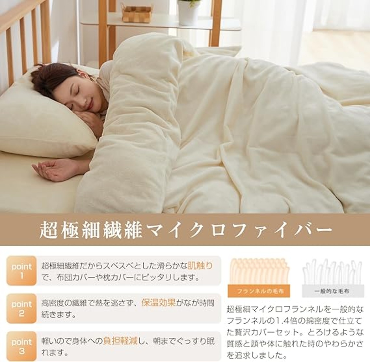 【熱を逃さず暖かさ長持】フランネル魅力には、保温性が高いことや着心地が軽いことなどが挙げられます。肌ざわりのひみつ 極細マイクロファイバーを