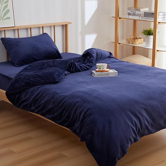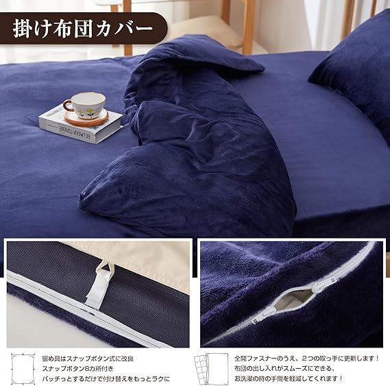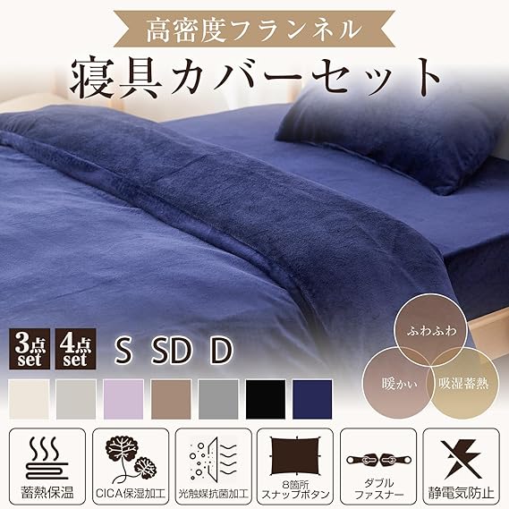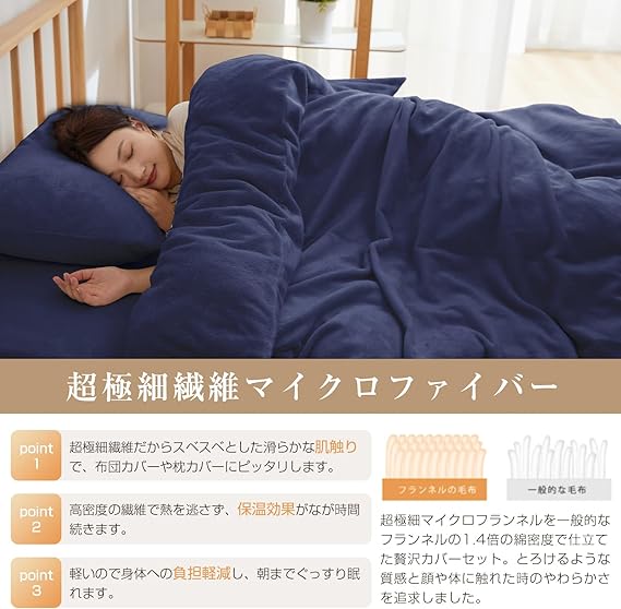 寝具カバーセット フランネル生地 布団カバー 掛け布団カバー ファスナー仕様 ボックスシーツ 全周ゴム付き 枕カバー 合わせ式 ベッドシーツ 敷き布団カバー 洋式・和式兼用 洗い替え用 カバーセット あったか マイクロファイバー フランネル 洗える 発熱 保温 静電気防止 丸洗いOK 冬 ネイビー シングル(3点セット) a