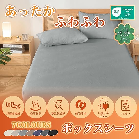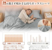 【あったか接触温感&蓄熱保温機能】本品の冬用ボックスシーツは高密度プレミアムフランネル生地を採用しています。マイクロファイバーが高密度に詰まっており、毛足に空気を多く包み込んでいるため、暖かい空気をしっかりと閉じ込め、蓄熱保温性に優れています。布団に入った瞬間、ふわふわぽかぽかな暖かさに包まれます。肌寒い秋冬に欠かせないアイテムになります。