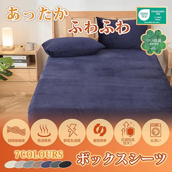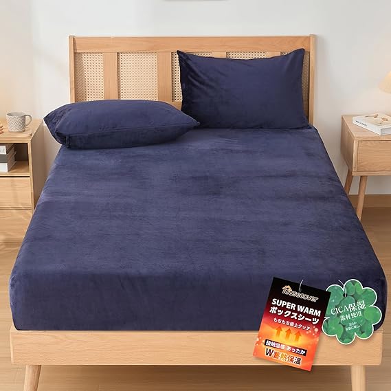 ボックスシーツ シングル 冬 ベッドシーツ フランネル 暖かい 厚手 極暖吸湿発熱 冬用 防寒対策 ベッドカバー【CICA保湿加工・防ダニ99.9%・エッコテックス認定】抗菌防臭加工 全周ゴム付き 静電気防止 丸洗いOK 着脱簡単 マットレスカバー あったかシーツ 敷ふとん兼用 マチ部分約30cm Housecover(シングル・100X200cm ネイビー) a